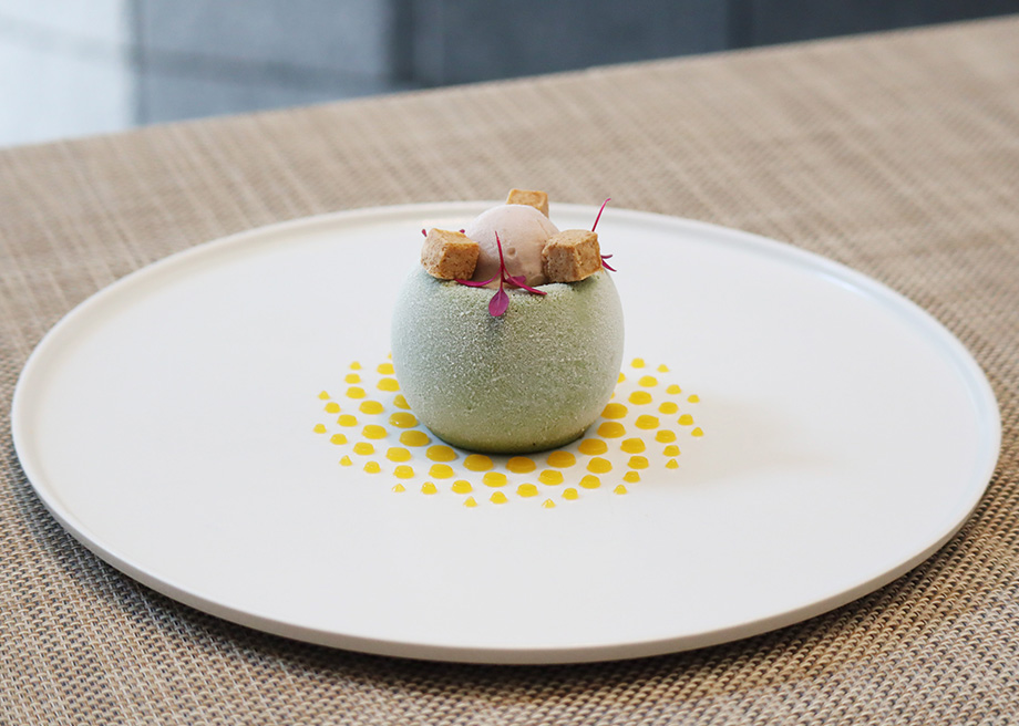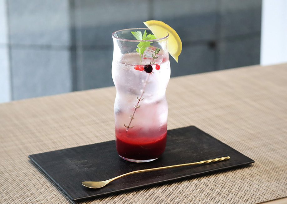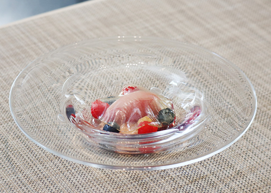 berries and soy milk yogurt ice cream with mint jelly verrine