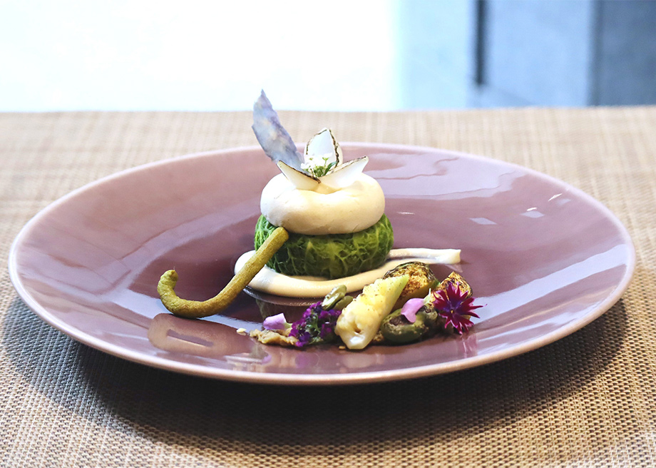 tempeh choux farci with butterbur tapenade and seasonal grilled vegetables