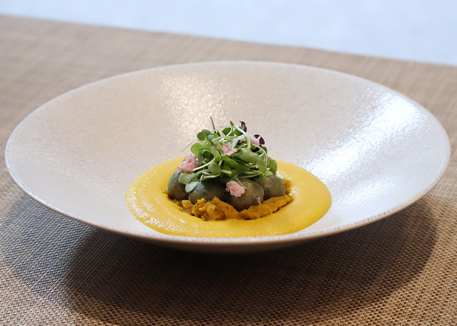 mugwort gluten free gnocchi with pumpkin potage