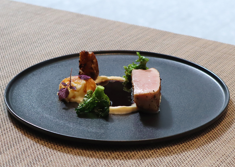 herb-grilled pork loin with ginger Madeira sauce